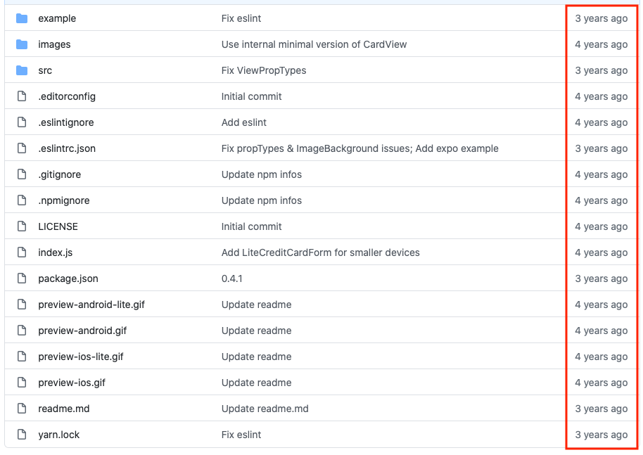 Github Commit History를 보면 다음과 같이 마지막 커밋이 3,4년 전인 것을 확인할 수 있다.