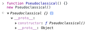 Pseudoclassical Style에서는 인스턴스를 만들기 위해 생성자 함수를 작성했다. javascript 에서 모든 함수는 생성됨과 동시에 객체인 Prototype Object를 생성하게 되고, Prototype Object의 프로퍼티로는 contructor()와 __proto__ 이렇게 두 가지를 가지게 된다.